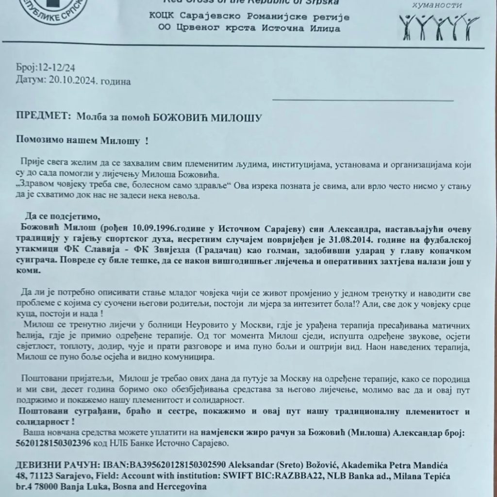 Из ОО ЦК Источна Илиџа стиже и вијест да ће бити покренута и нова хуманитарна акција за Милоша.