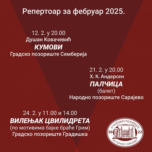 Репертоар Народног позоришта Источно Сарајево за мјесец фебруар