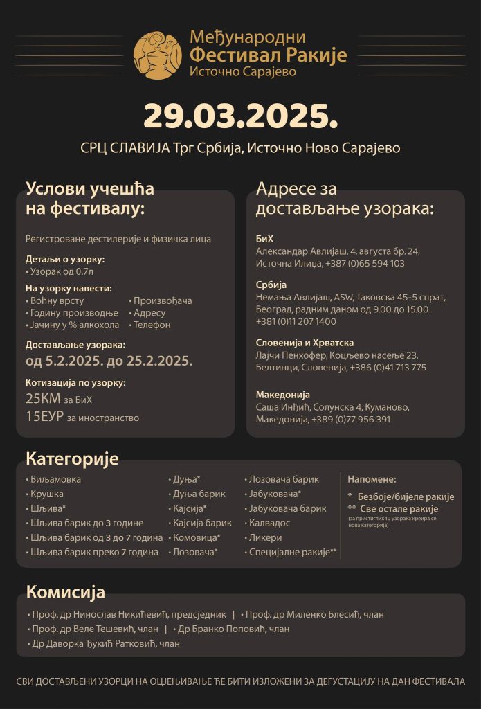 У Источном Сарајеву ће 29. марта 2025.године бити одржан Међународни фестивал ракије – саопштили су организатори.