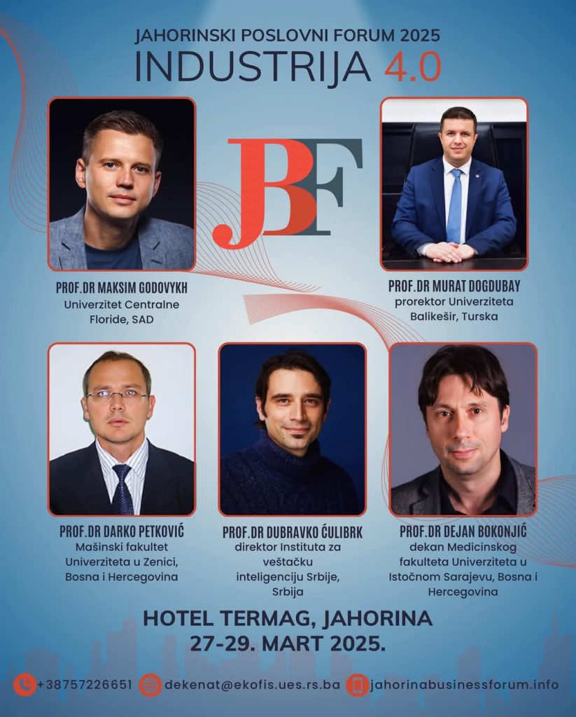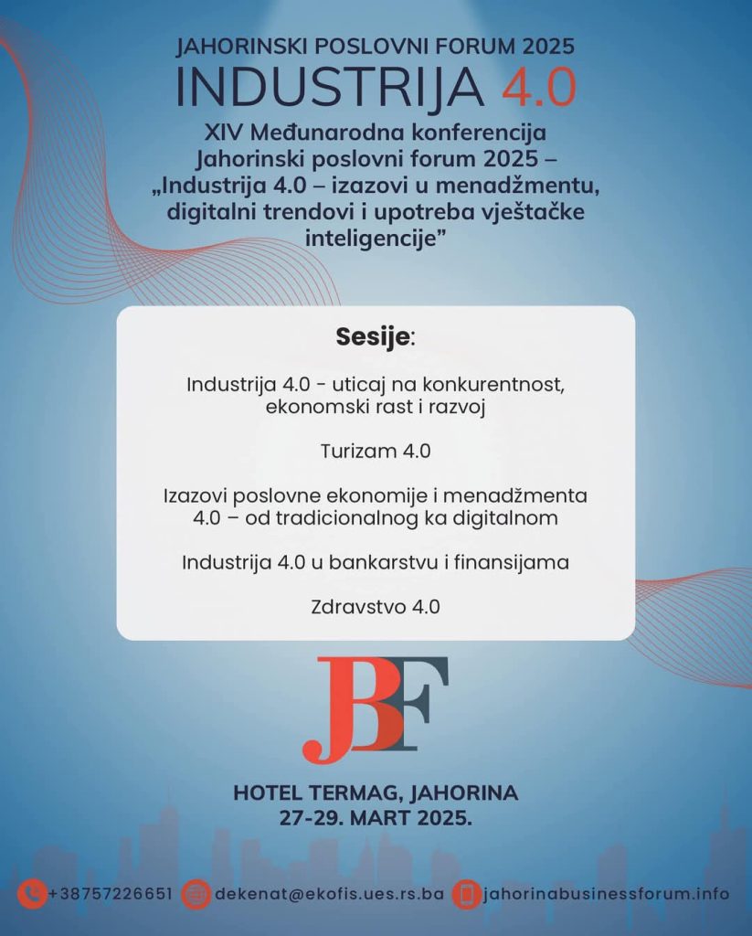 Четрнаеста научна конференција са међународним учешћем „Јахорински пословни форум 2025“ одржаће се 27. 3. 2025 – 29. 3. 2025. године у хотелу Термаг на Јахорини.