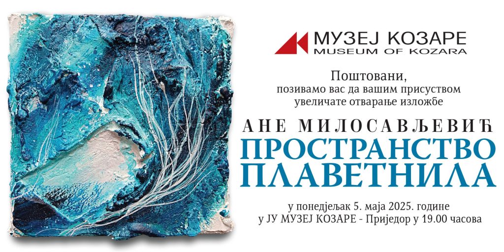 Сликарство Самостална изложба Ане Милосављевић „Пространство плаветнила“ у Приједору Јавност мај 4, 2025 0 мин читања Самостална изложба Ане Милосављевић „Пространство плаветнила“ биће отворена 05. маја у приједорском Музеју Козаре.