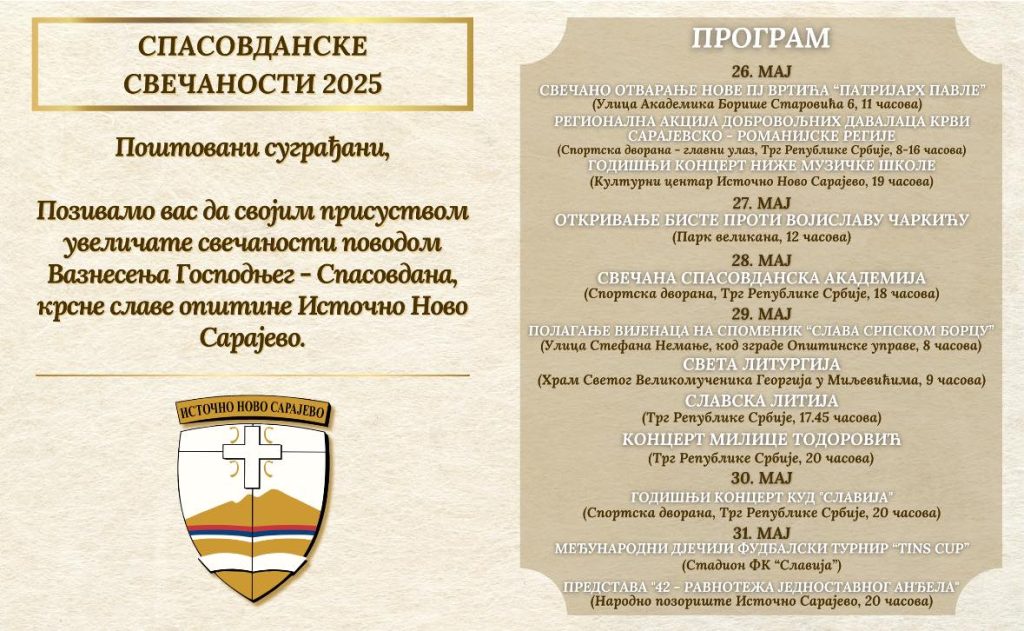 Програм прославе крсне славе и Дана општине Источно Ново Сарајево, Вазнесења Господњег – Спасовдана.