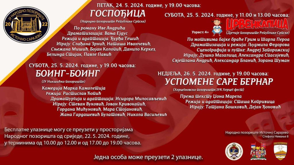 У Источном Сарајеву ће у четвртак, 23. маја 2024. године, с почетком у 20.00 часова, званично бити отворена републичка установа културе Народно позориште Источно Сарајево, у организацији Града Источно Сарајево и Општине Источно Ново Сарајево, те уз подршку Владе Републике Српске.