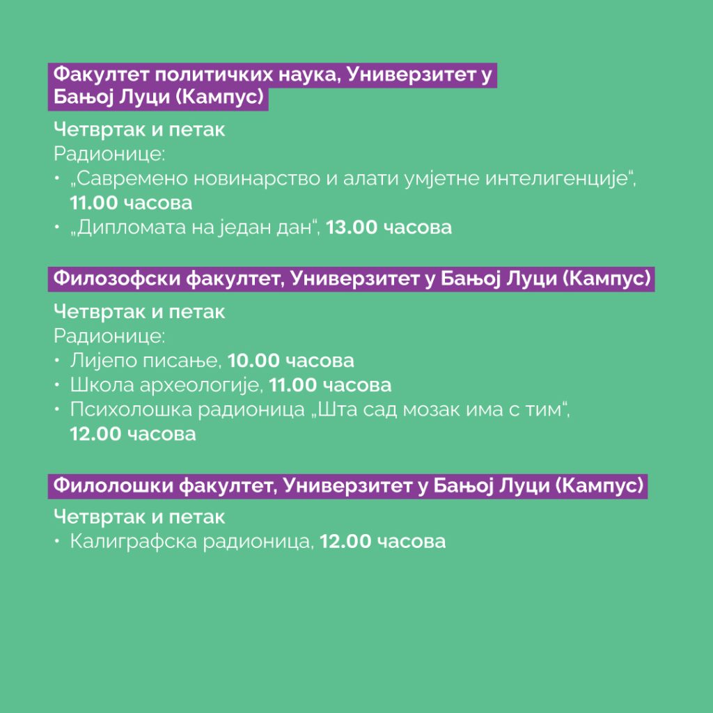 Универзитета у Бањој Луци у Кампусу. Факултет политичких наука организује двије
