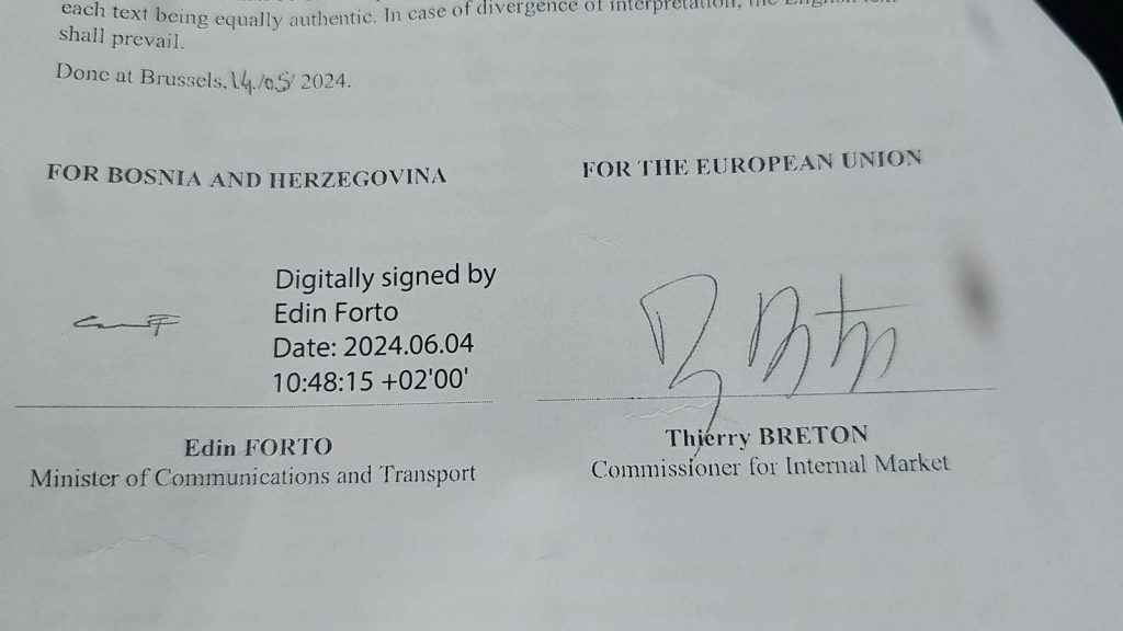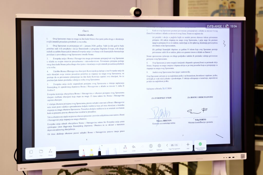 Међународни споразум између ЕУ и БиХ „Дигитална Европа“ потписан дигиталним квалификованим потписом УИО.