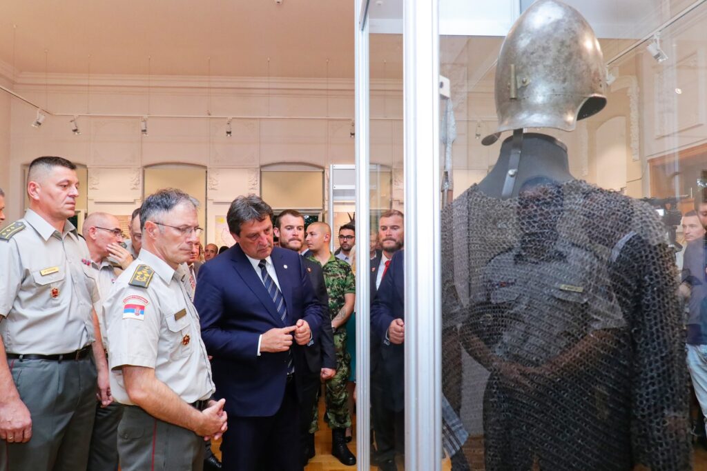 -Војни музеј у Београду представља једну од најстаријих музејских институција у Републици Србији. Истог дана када је Народна скупштине тадашње Кнежевине Србије, 22. августа 1878. прогласила независност од Турског царства, кнез Милан Обреновић потписао је указ о оснивању музеја, којег је припремио тадашњи министар војни, пуковник Сава Грујић, чиме је јасно наглашена улога војске као важне карике у стварању и чувању свега што је требало да прикаже изузетно богату српску војну и општу историју. Војни музеј ће, у септембру, обележити 120 година од отварања своје прве сталне поставке, што га ставља раме уз раме са Народним музејом Србије, централном установом културе надлежном за музејску делатност у нашој земљи. Празници и дани сећања попут Видовдана су добар повод да се, кроз музејску баштину, још једном осветле бројне историјске личности и епизоде из војне историје Срба. На првом месту, видећете видећете аутентичне примерке наоружања и војне опреме јавног средњег века, какви су коришћени у време Маричке и Косовске битке. Идеја нам је била да период од смрти цара Душана до владавине деспота Стефана Лазаревића, представимо публици. Изложене су и реплике фресака из наших средњовековних манастира, историјске карте и уметнички прикази светих српских ратника. Друга тема ове изложбе је Косовско предање, оличено у каснијем народном и црквеном предању. Ово предање показало се попут луче која је нашим прецима показивала пут ка ослобођењу и обнови српских земаља- рекао је потпуковник Секулоски и захвалио се свима који су помогли у реализацији ове изложбе.Отварању изложбе су присуствовали министар одбране Братислав Гашић, начелник Генералштаба војске Србије Милан Мојсиловић, градоначелник Иван Манојловић, представници Града, свештенство, представници установа културе, генерали, официри и подофицири.